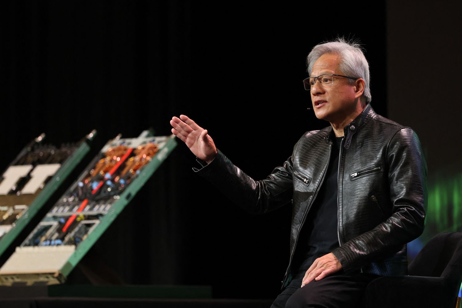 Jensen Huang, PDG de Nvidia Corp., lors d'une conférence de presse en marge du sommet des PDG de l'APEC à Gyeongju, en Corée du Sud, le vendredi 31 octobre 2025.